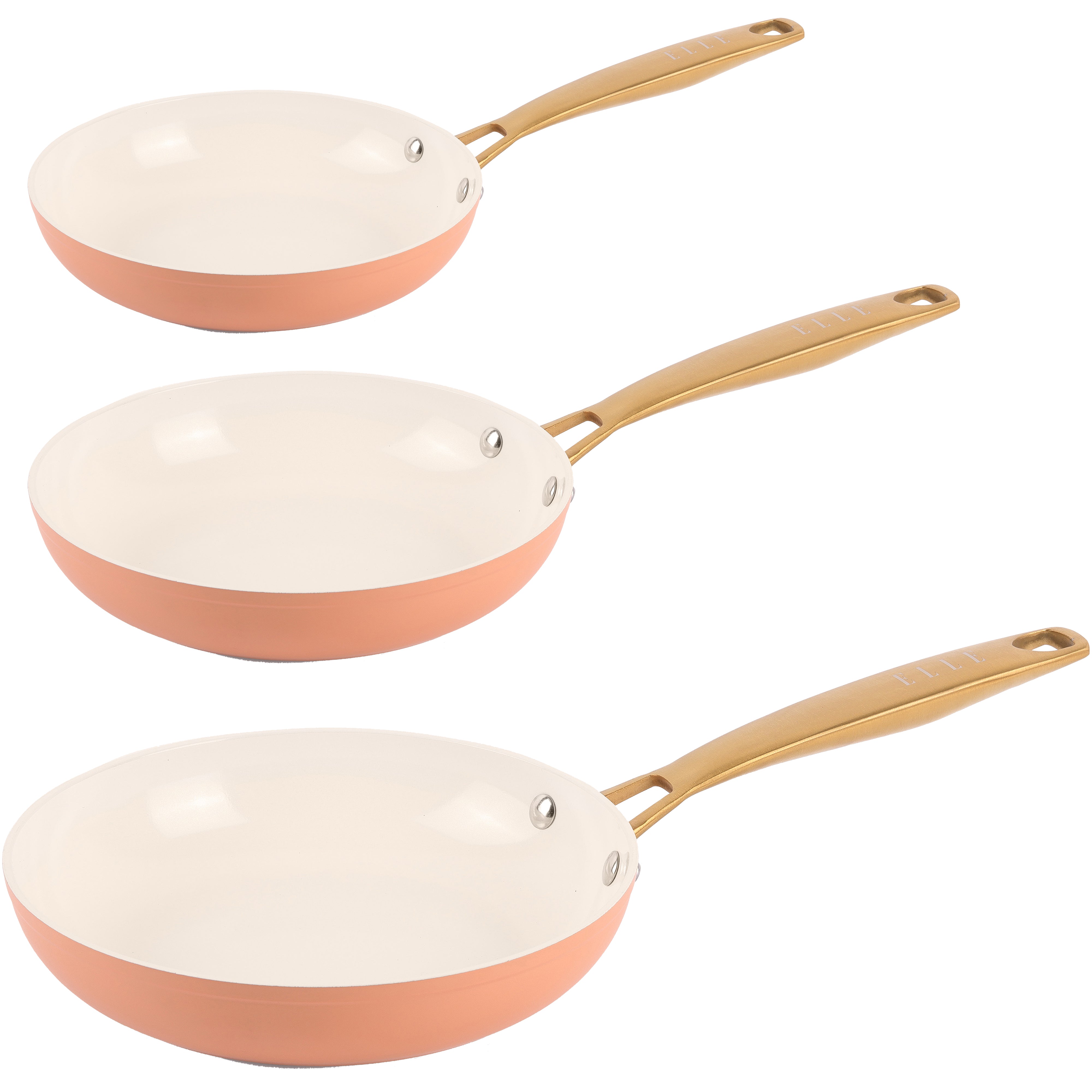 ELLE Home Helene Ceramic Non-Stick Frypan Set – 3pc Induction Cookware, Apricot