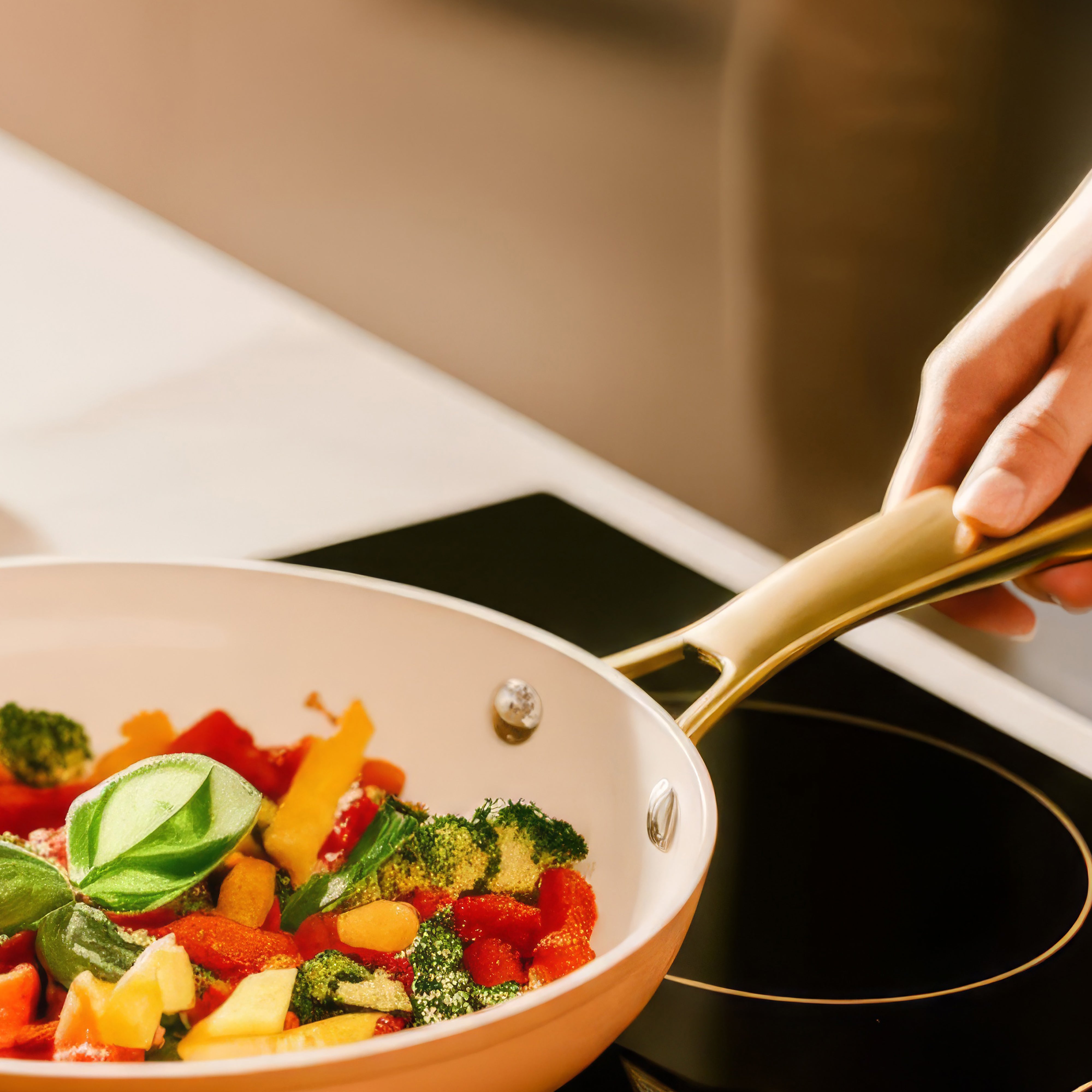 Bring effortless style and performance to your kitchen with the ELLE Home Helene 3-Piece Frypan Set in a stunning Apricot Wash. Designed for both everyday cooking and elegant presentation, each pan features a sleek ceramic coating for smooth, non-stick performance and easy cleanup. The gold-painted stainless steel cast handles add a luxurious touch while providing strength and stability. Induction-capable and compatible with various cooktops, this versatile set includes 20cm, 24cm, and 28cm frypans—perfect for everything from quick breakfasts to gourmet dinners. With its blend of beauty and functionality, the Helene set transforms your cookware into a statement piece.